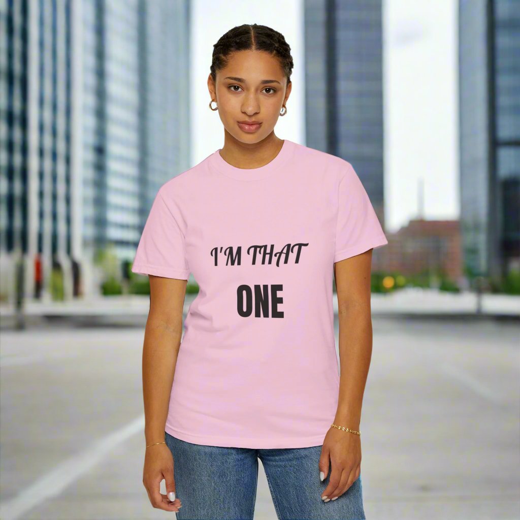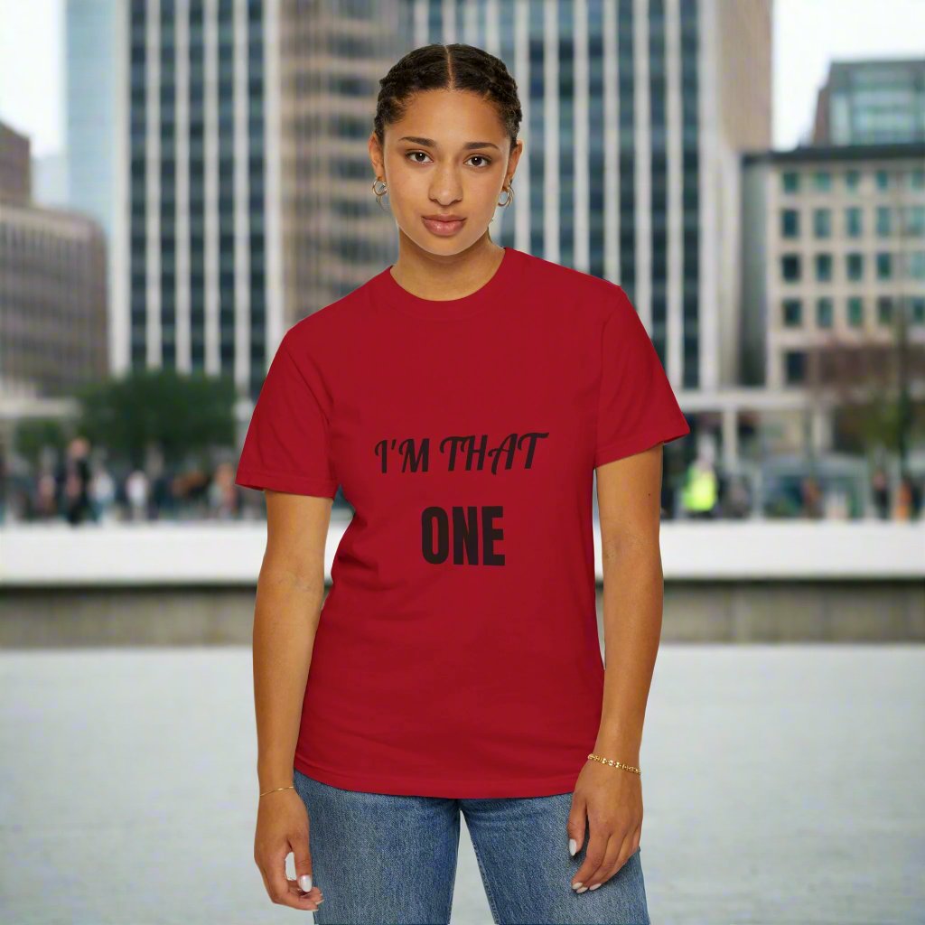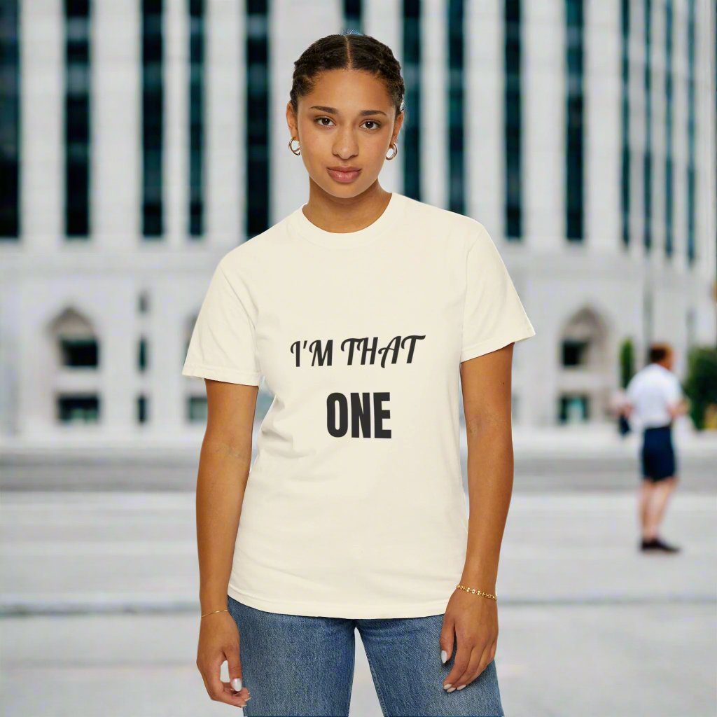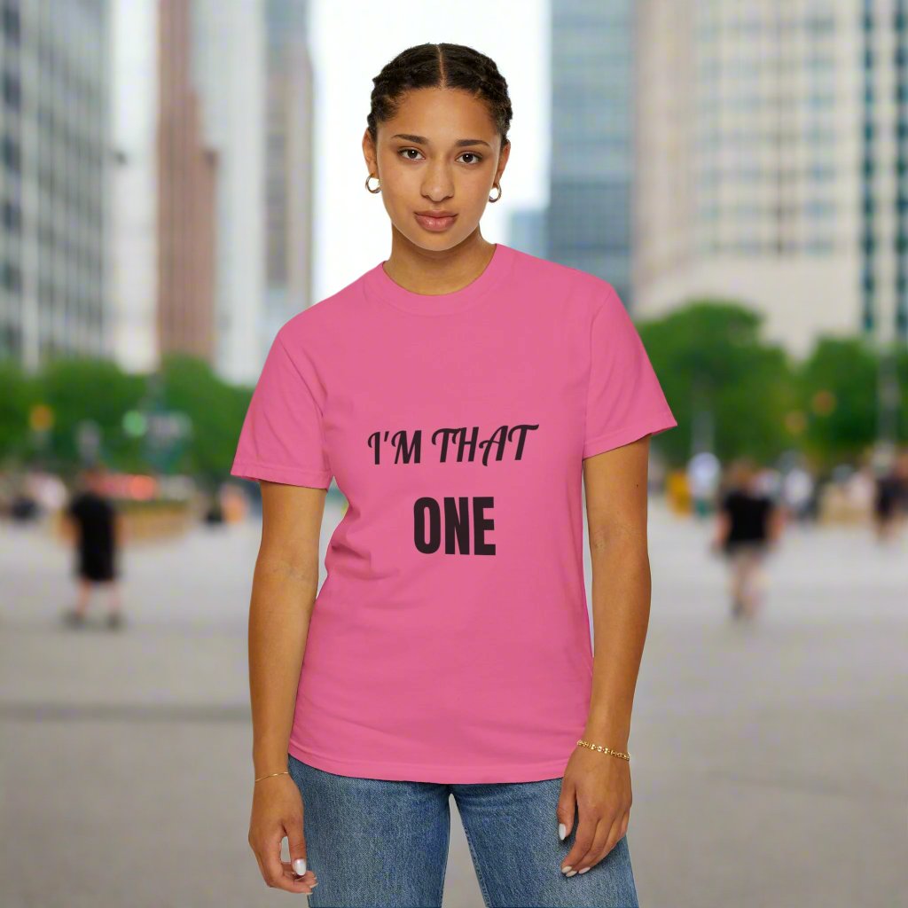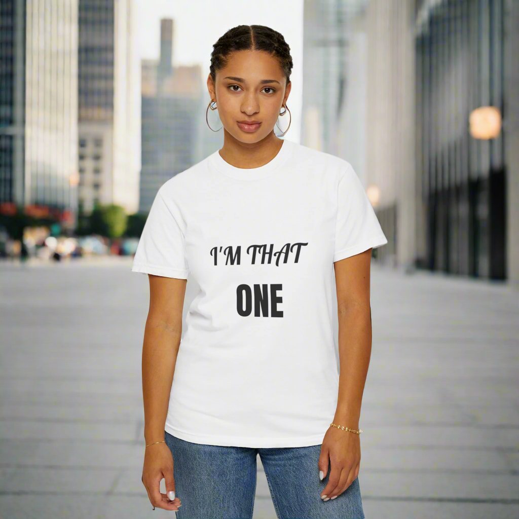 Introducing our: “I'M THAT ONE” 100% cotton t-shirt featuring a unique and eye-catching design that is sure to make a statement. This t-shirt offers unbeatable comfort, breathability, and durability, ensuring a luxurious feel and long-lasting wear.