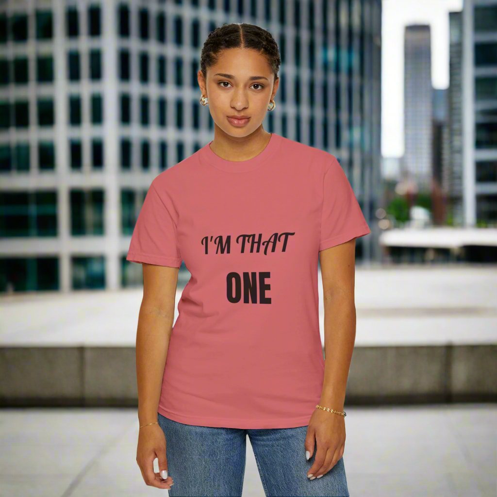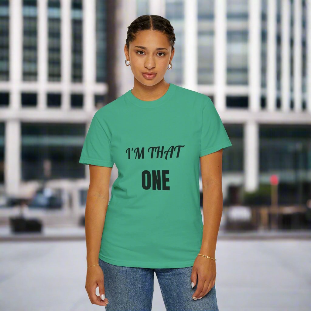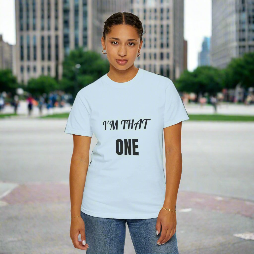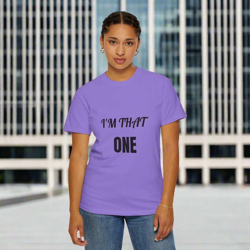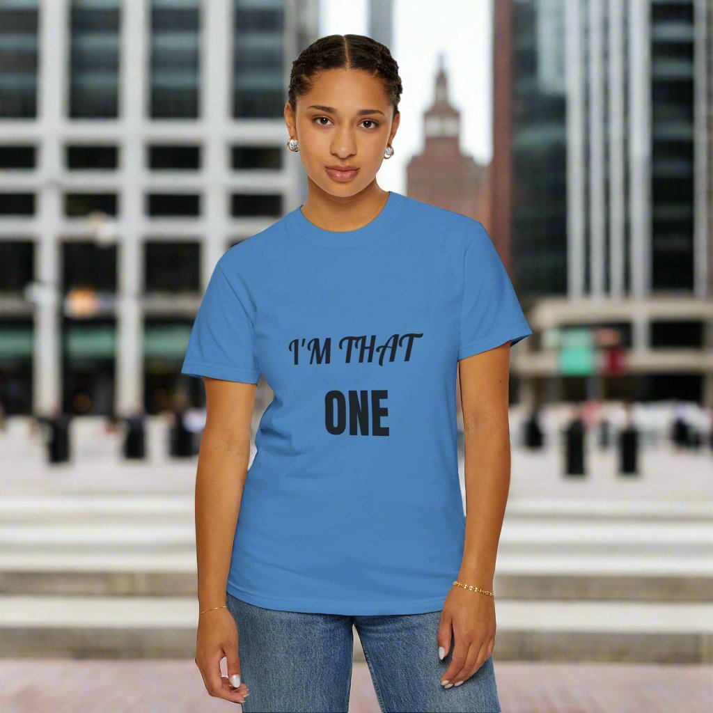 Introducing our: “I'M THAT ONE” 100% cotton t-shirt featuring a unique and eye-catching design that is sure to make a statement. This t-shirt offers unbeatable comfort, breathability, and durability, ensuring a luxurious feel and long-lasting wear.