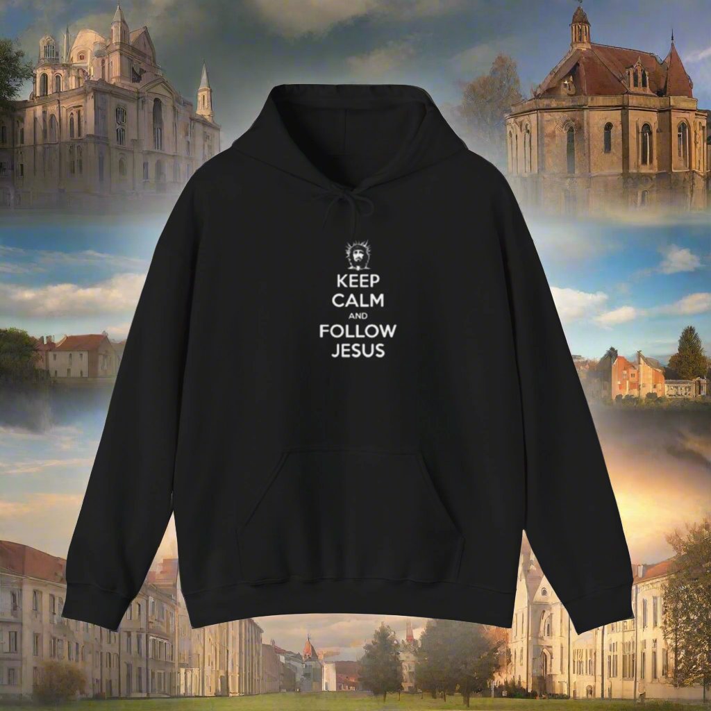 Introducing our: Keep Calm Follow Jesus hooded sweatshirt, crafted with a luxurious blend of thick cotton and polyester for ultimate comfort and durability. Each sweatshirt features a unique design that adds a touch of style and personality to your wardrobe.