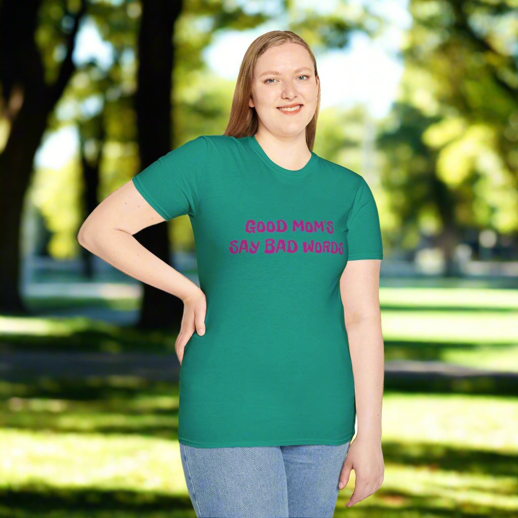 Introducing our: “Good Mom's Say Bad Words” 100% cotton t-shirt featuring a unique and eye-catching design that is sure to make a statement. This t-shirt offers unbeatable comfort, breathability, and durability, ensuring a luxurious feel and long-lasting wear.