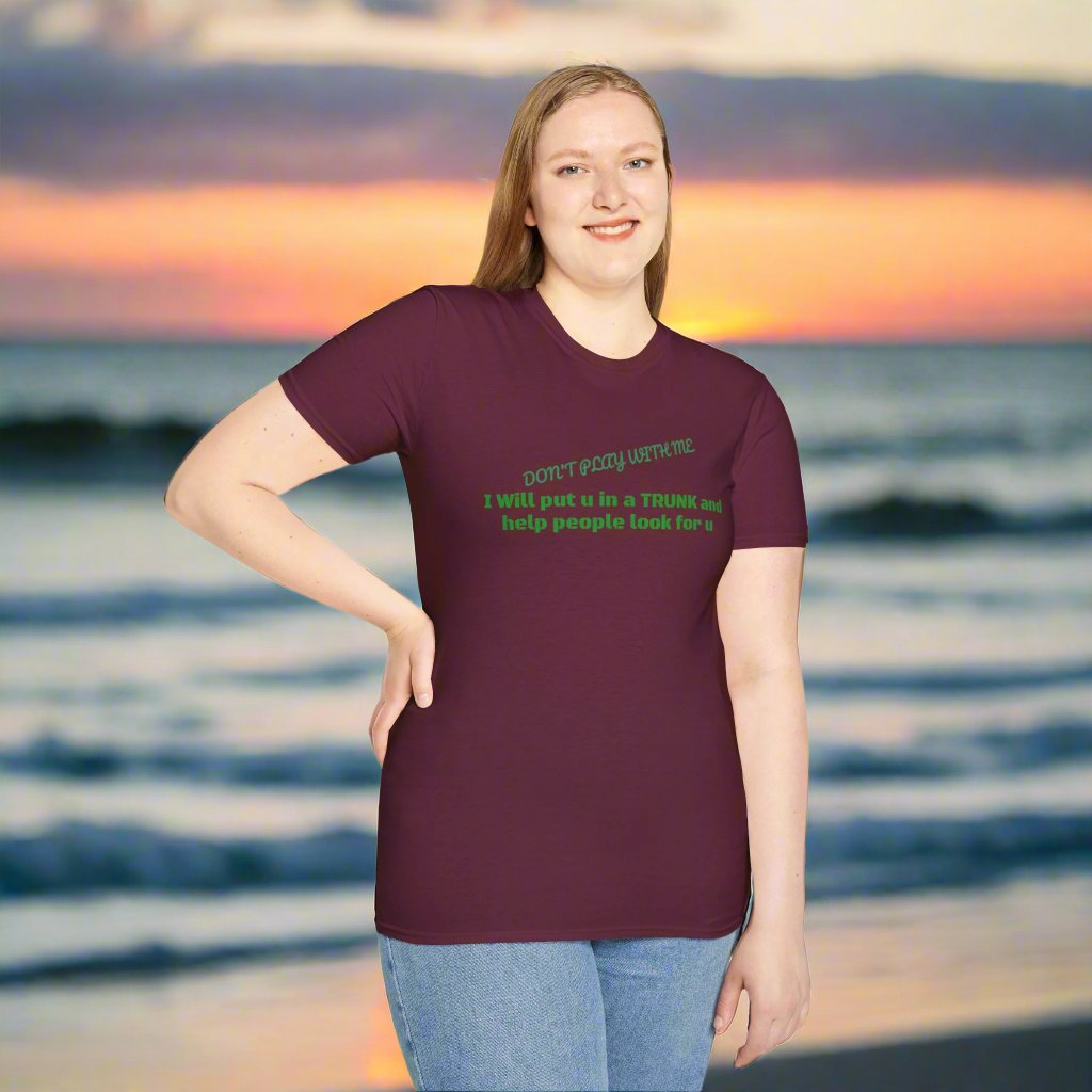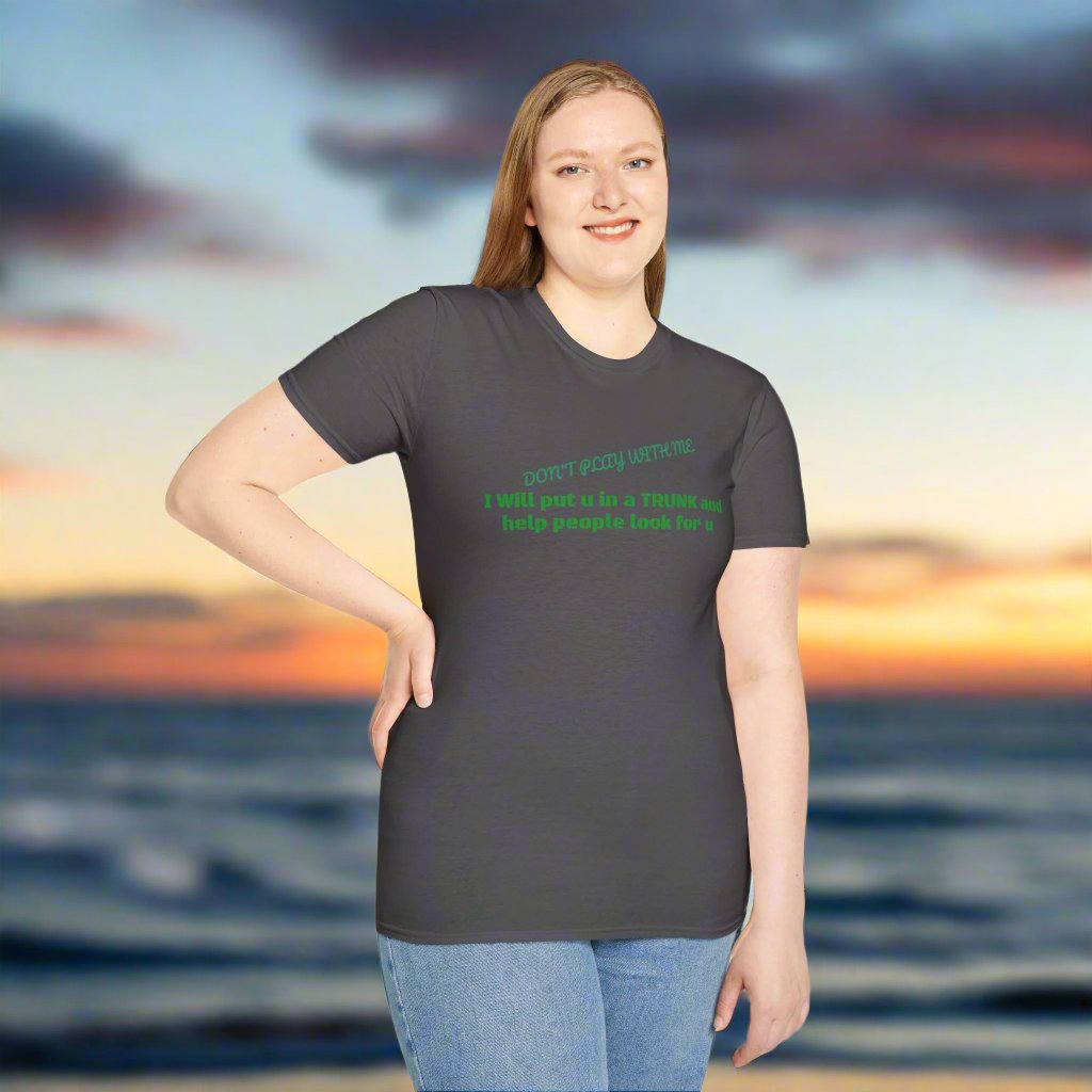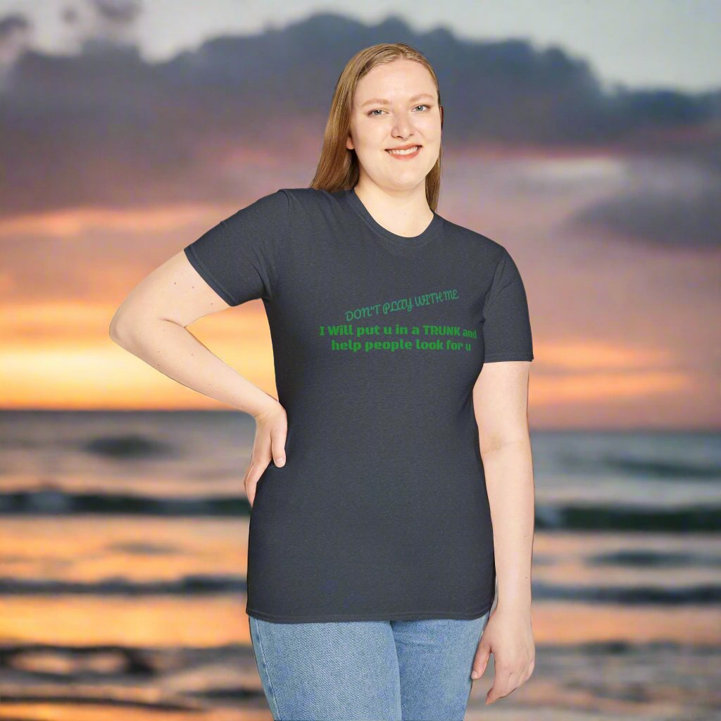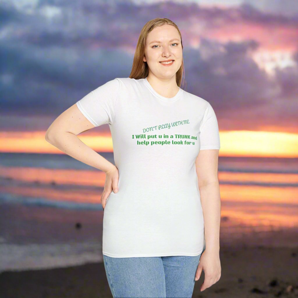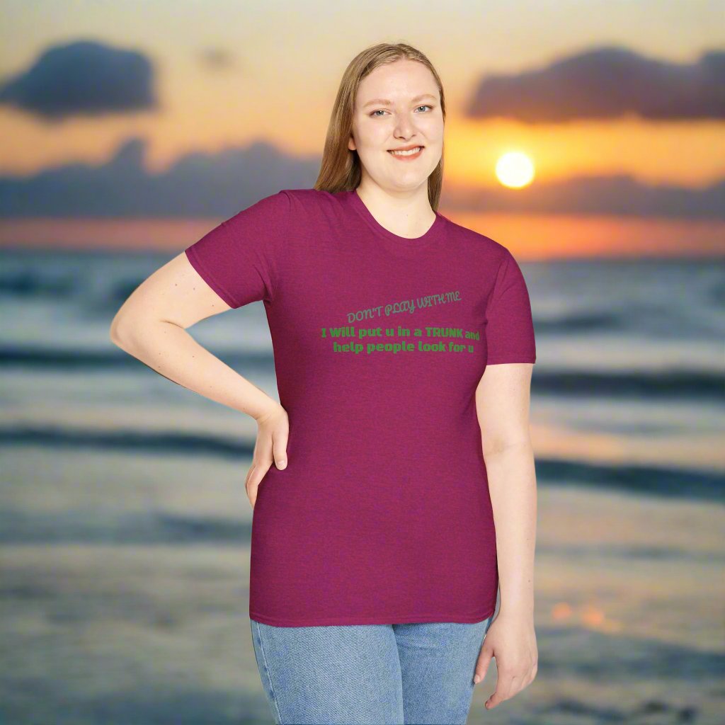 Introducing our: “Put you in a trunk” 100% cotton t-shirt featuring a unique and eye-catching design that is sure to make a statement. This t-shirt offers unbeatable comfort, breathability, and durability, ensuring a luxurious feel and long-lasting wear.