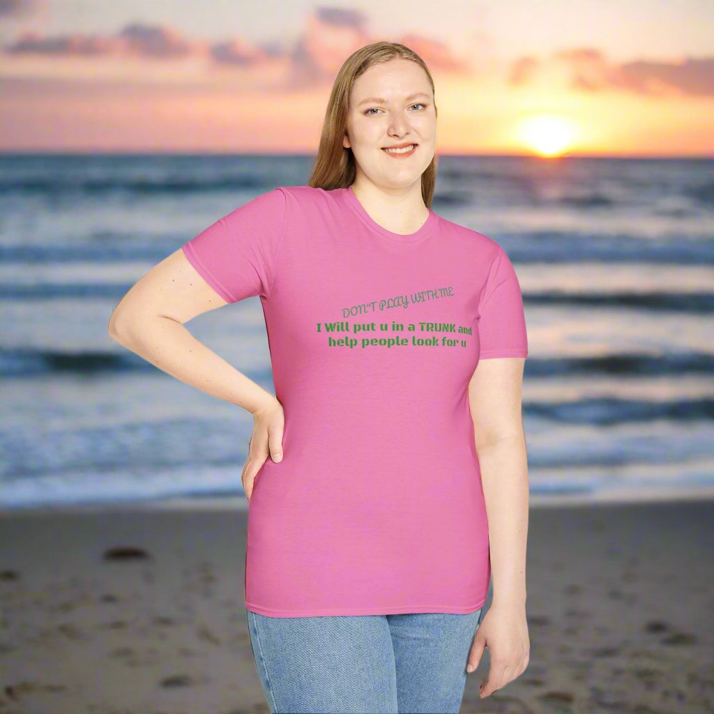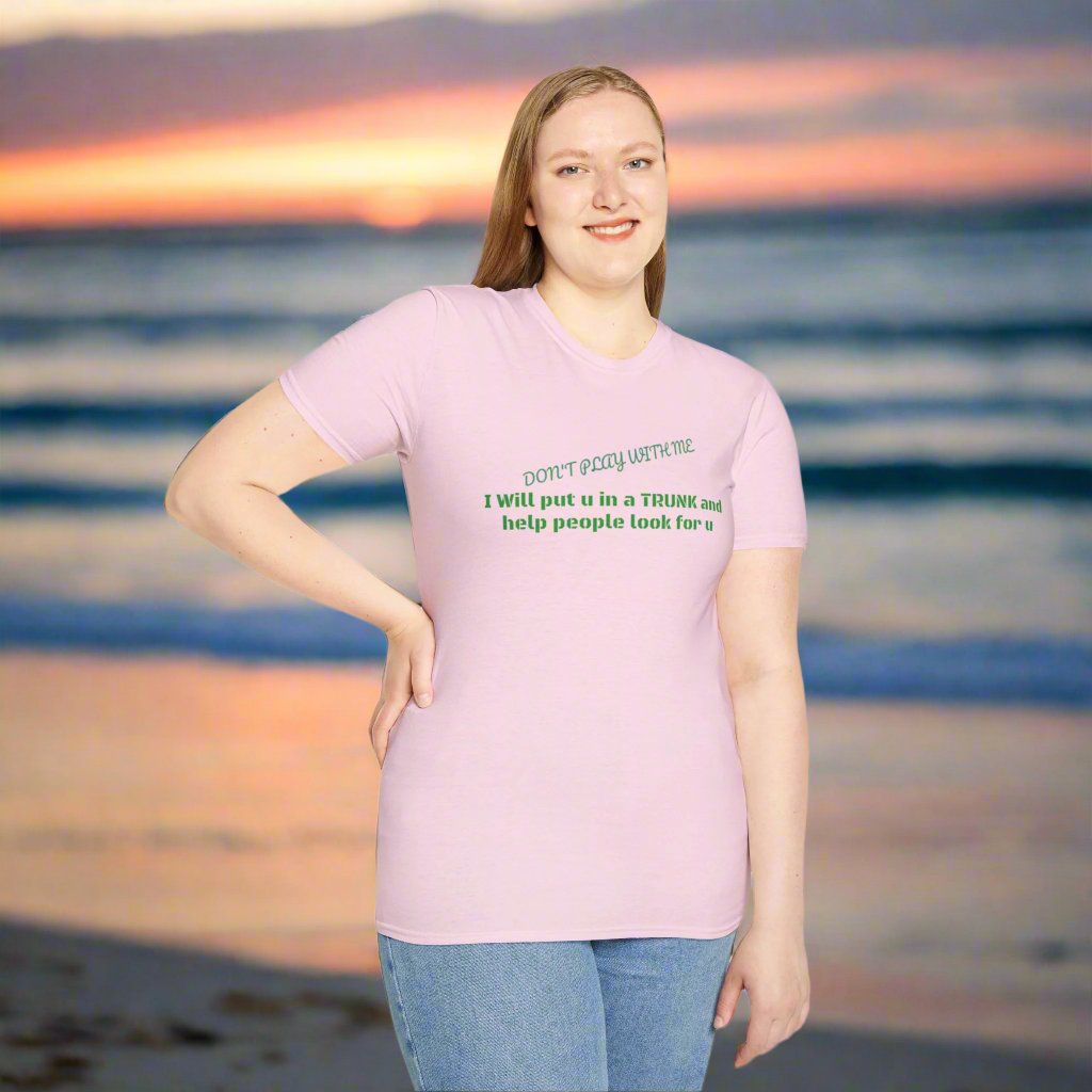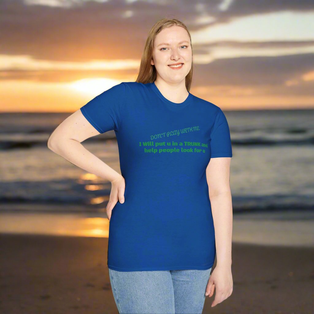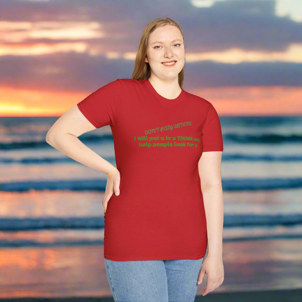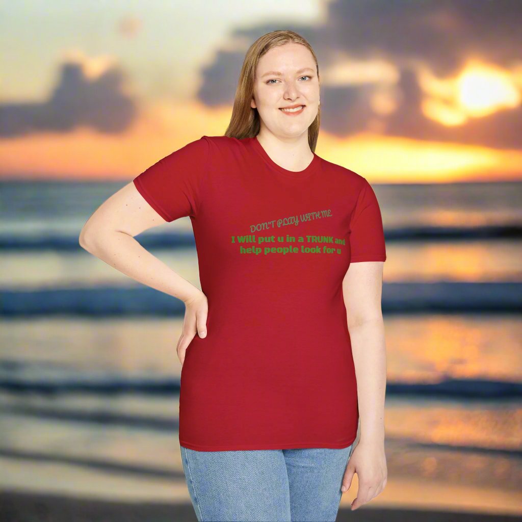 Introducing our: “Put you in a trunk” 100% cotton t-shirt featuring a unique and eye-catching design that is sure to make a statement. This t-shirt offers unbeatable comfort, breathability, and durability, ensuring a luxurious feel and long-lasting wear.
